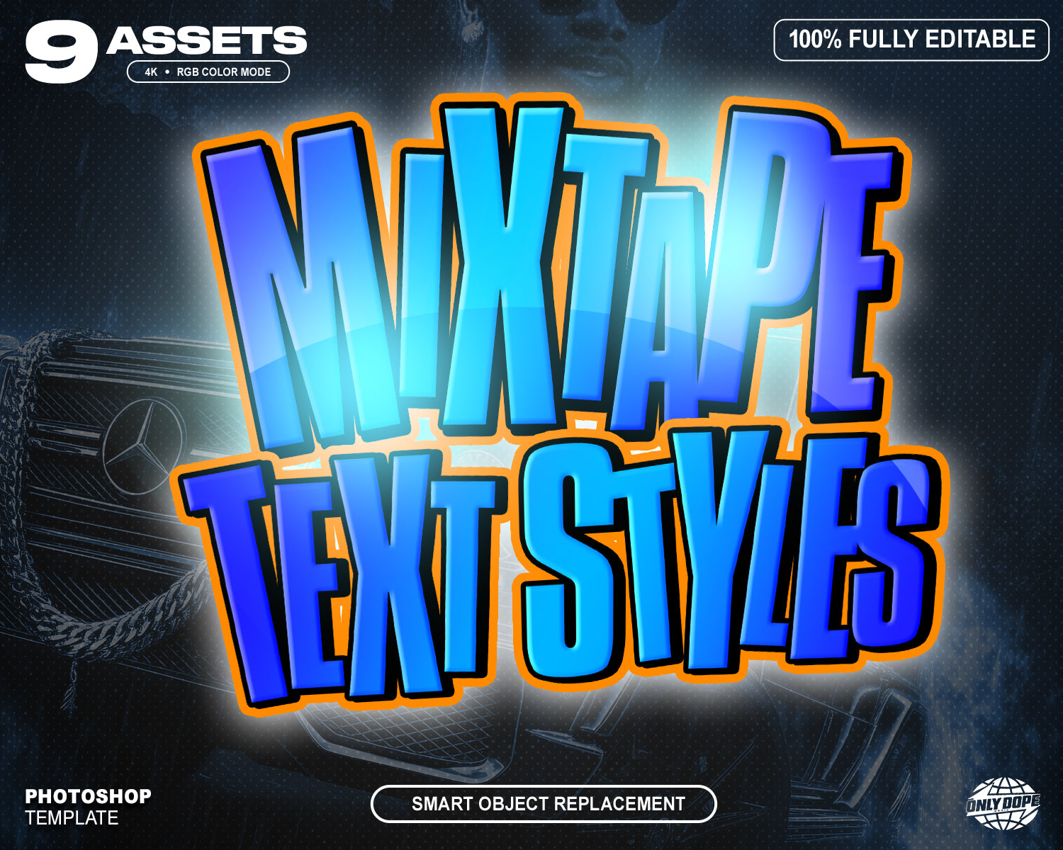 A collection of 9 2000s Mixtape inspired text styles. Easily drag drop to use! You can adjust them to fit any design project.